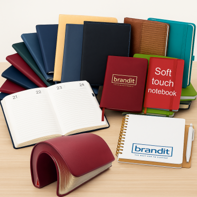 Новите тефтери на едро и с печат за реклама се изработват в обеми от 80 до 180 листа (160 до 360 страници), размери A6 (148x210mm), A5 (210х148mm) до B5. Евтините рекламни тефтери са с корици от обикновено, луксозните тефтери с термоактивно платно, което позволява брандиране чрез релефен надпис по поръчка.